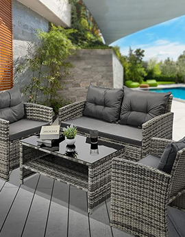 matching coffee table the Livsip 4-pc Outdoor Patio Rattan Set absolutely looks the part for an